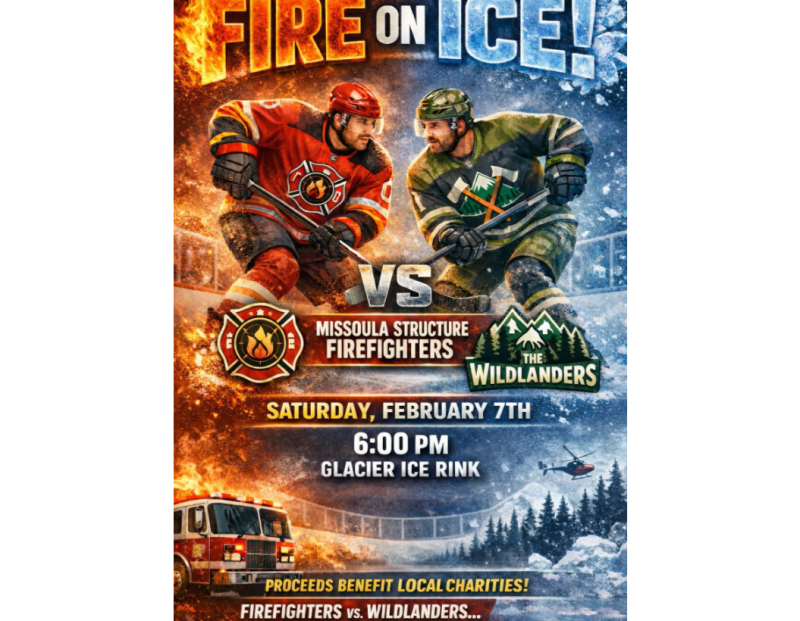 Come watch your local Wildland Firefighters play the Missoula Urban Firefighters in a battle on ice! Enjoy all you care to drink beer from Big Sky Brewery, a raffle, silent auction, and 50/50. Proceeds benefit local charities. First puck drops at 6 for the JV game, second game to follow.