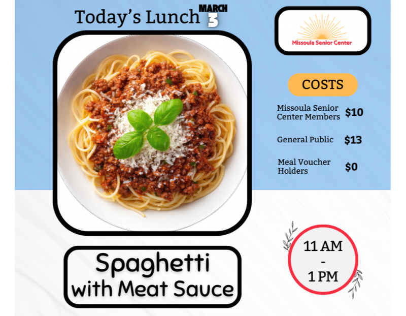 Every Monday-Friday the Missoula Senior Center offers lunch from 11:00-1:00.
