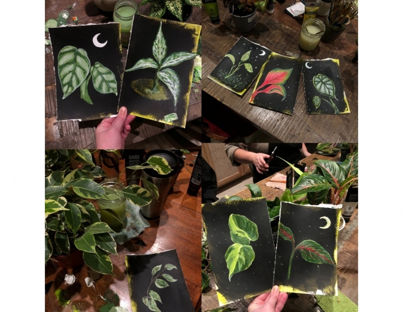 This will be a cozy guided art session that will include traditional scientific illustration techniques, how to paint light on top of dark, color theory and the benefits of dark negative space when portraying an organic subject. Class will start with students choosing a plant from around the store as reference, followed by step by step guidance in between focused painting. By the end of the class you will go home with a finished roughly 5 x 7 inch dark naturalism illustration of your own.