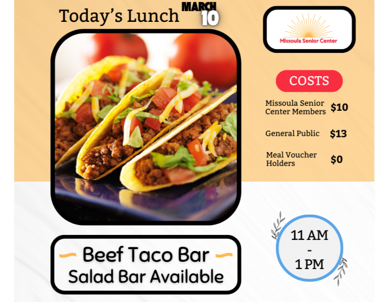 Every Monday-Friday the Missoula Senior Center offers lunch from 11:00-1:00.
