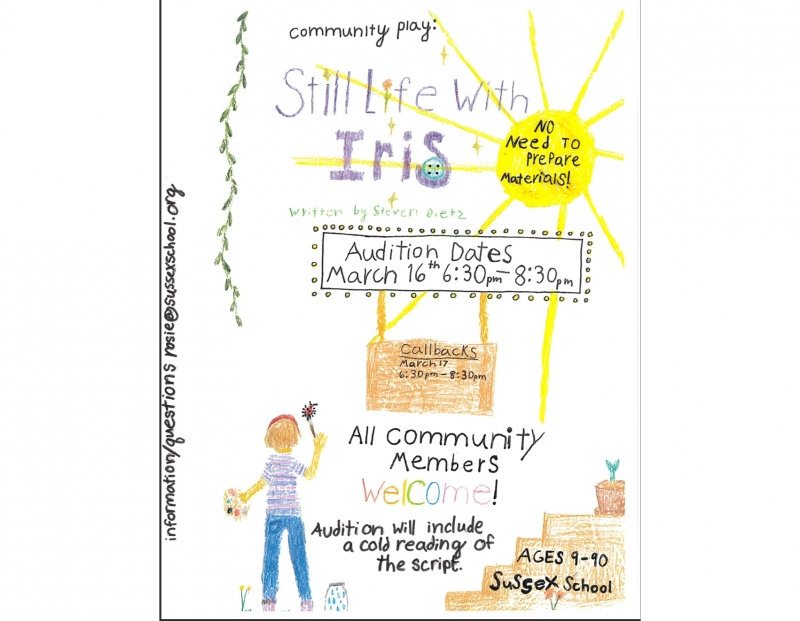 No preparation is necessary. Auditions will consist of cold readings from the script, making this an accessible and low-pressure opportunity for first-time actors and seasoned performers alike. More information rosie@sussexschool.org