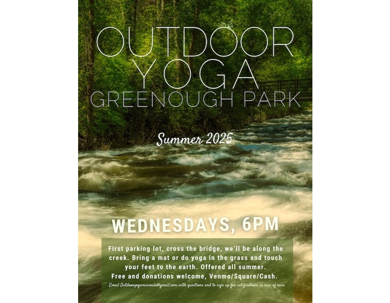 Outdoor yoga is back—starting Wednesday, May 28 at 6pm in Greenough Park! Ongoing through the summer.