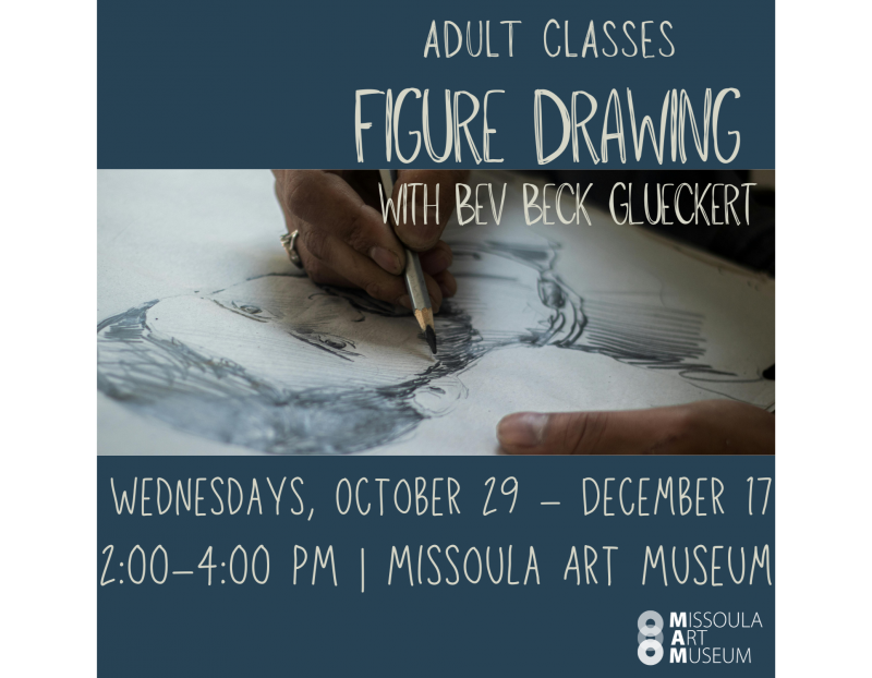 Missoula Art Museum is excited to offer a new Creative Aging class this fall: Figure Drawing. Taught by experienced artist Bev Beck Glueckert, trained by Creative Aging Foundations, this free class focuses on beginner to intermediate figure drawing in a welcoming, supportive environment. Some sessions will include live models; others will explore foundational techniques and creative practice. Designed for adults over 55 in mind, though all are welcome as space allows. Art materials are provided, though participants are welcome to bring their favorite personal supplies or tools. Part of MAM’s Creative Aging initiative—supported by Lifetime Arts and the Montana Arts Council—this program is free, with donations encouraged to support future offerings. Space is limited. Registration opens soon!