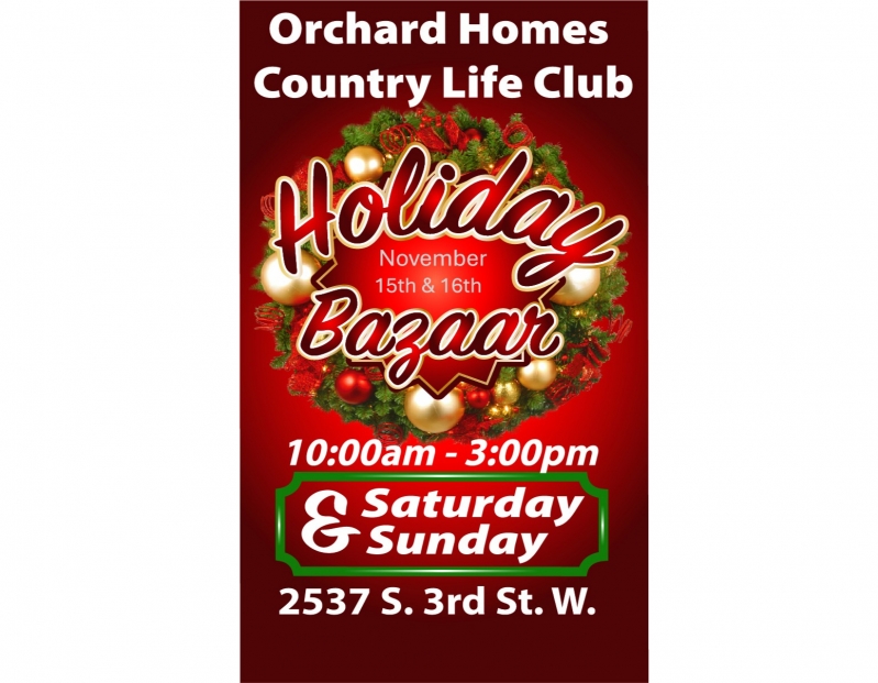 Orchard Homes Holiday Bazaar November 15 & 16 10 a.m. to 3 p.m.