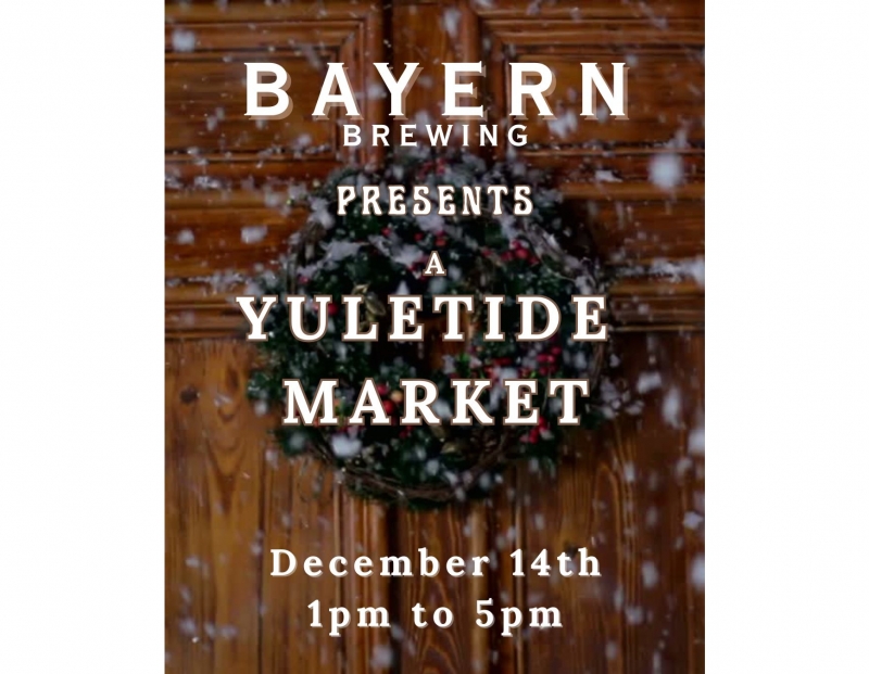 Join us and 7 local vendors for a Yuletide Market! Community is so important to us here at Bayern, so come grab yourself a cold one and take a walk through a small market driven by folks who are your neighbors!